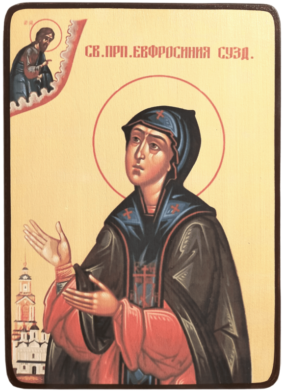 Эта удивительная женщина - одна из праведниц, которыми так богата земля Русская, снискавшая всенародную любовь и прославившаяся горячей верой и богоугодной жизнью. Чтобы иметь возможность обратиться к ней с просьбой, настроиться на молитву, можно купить икону Евфросиния Суздальская. Сейчас святая находится в Царствии Небесном, но слышит всех, просящих о помощи.