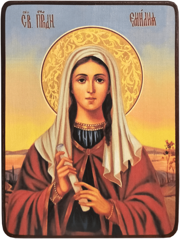Преподобная Емилия Кесарийская (Каппадокийская) жила ок 310-383 гг. Была матерью десятерых детей, пять из которых Православной Церковью были причислены к лику святых: святителя Василия Великого епископа Кесарии Каппадокийской и Григория епископа Нисского, Петра епископа Севастийского, преподобная Макрина Младшая, принявшая монашеский постриг и поселившаяся в обители, которую она построила в Понте, на берегу реки Ирида, близ горы Ивора, явившую собой образец женского монашества и блаженную Феосевию (так же это имя еще произносится как Феозва), которая стала диаконисой и помощницей святителя Григория.