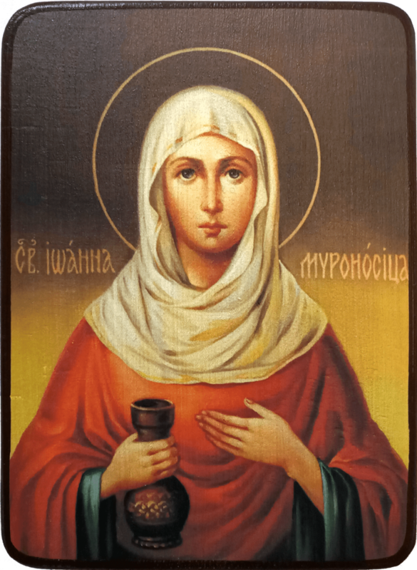Согласно преданию, Иоанна была супругой Хузы, домоправителя царя Ирода, и последовательницей Христа - следовала за Ним во время Его проповедей, о чем также упоминается в Евангелие от Луки: "Иоанна, жена Хузы, домоправителя Иродова, и Сусанна, и многие другие, которые служили Ему имением своим". (Лк.8:3).