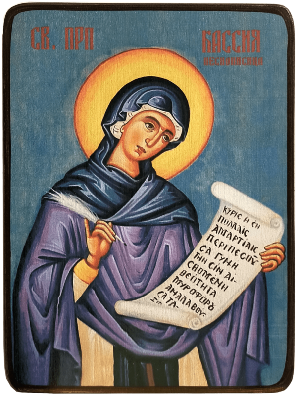 Преподобная Кассия жила в начале IX века в Константинополе. Девушка была невероятно красива и умна. Ее заметил молодой император, который пожелал взять красавицу в жены. Благодаря своему острому уму Кассия избежала нежеланного брака и удалилась из города. Она основала женский монастырь неподалеку и стала там игуменьей.