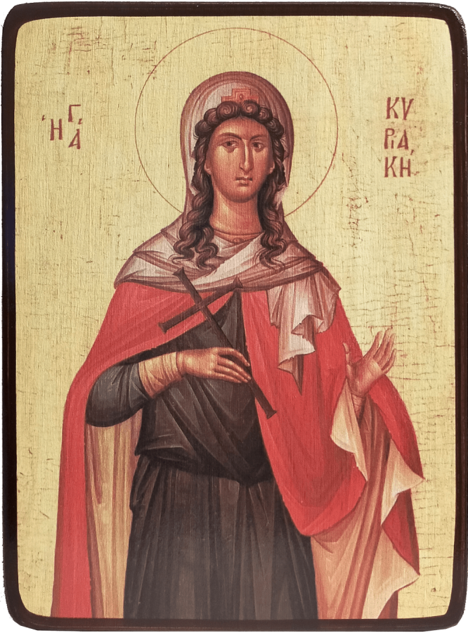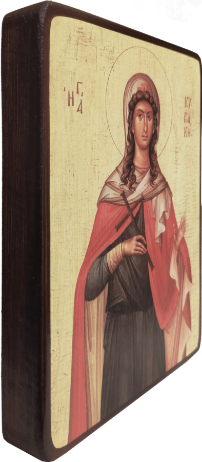 Святая мученица покровительствует молодым девушкам. Она поможет найти достойного избранника. Молитва перед образом дарует укрепление семейных уз, помогает обратить в христианство неверующего супруга или супругу. Также святая Кириакия всегда помогает тем, кого одолевают сомнения.