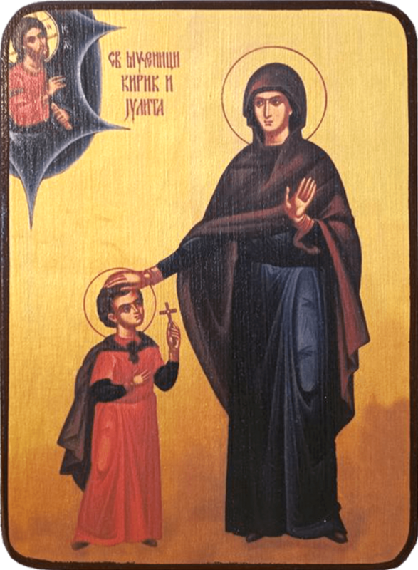 Святые мученики Кирик и Иулитта жили в Малой Азии в городе Иконии Ликаонской области. Святая Иулитта происходила из знатного рода и была христианкой. Рано овдовев, она воспитывала своего трехлетнего сына Кирика. Во время гонения, воздвигнутого на христиан императором Диоклитианом (284-305), святая Иулитта с сыном и двумя верными рабынями ушла из города, оставив свой дом, имущество и рабов.