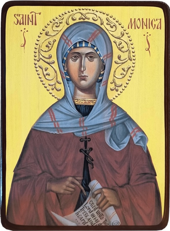 Родилась святая в 332 году в Тагасте в христианской семье. Муж её был язычником, вспыльчивым и ведшим безнравственную жизнь.У четы было три сына - святой Августин, Перпетуя и Навигий. Моника очень печалилась из-за того что муж не разрешил крестить их. Больше всего она переживала за жизнь молодого Августина, который жил в Карфагене и принял незаконнорожденного сына от внебрачной связи. Ее непрестанные слёзы и молитвы о сыне обратили ко Христу ее мужа под конец его жизни.