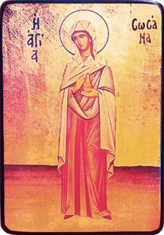 Святая Сусанна была среди тех святых семи жен (женщин), которые раньше всех узнали о самом великом событии в истории христианства - Воскресении Господнем. Жены-мироносицы пришли утром на третий день после казни Спасителя в пещеру, где было положено Его тело, чтобы помазать Его благовонным миром, согласно традициям. Подойдя к пещере, они увидели, что камень отвален. Ангел, обращаясь к ним, сказал: "не бойтесь: ибо знаю, что вы ищете Иисуса распятого. Его нет здесь; Он воскрес, как сказал еще будучи с вами. Подойдите, посмотрите место, где лежал Господь. А потом пойдите скорее, и скажите ученикам Его, что Он воскрес из мертвых".