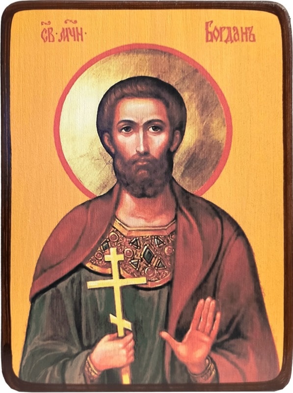 Святой Богдан вместе с мучеником Максимом и мученицей Асклипиодотой жили во времена гонения на христиан жестокого императора Максимиана Галерия. Максим и Асклипиодота происходили из знатного рода и приняли христианство. В это же время, по всей вероятности, уверовал во Христа и Богдан, о жизни которого практически ничего неизвестно. Однажды, правитель Тирис приказал привести к себе этих трех верующих людей. Во время беседы с ними он стал настаивать, чтобы они отреклись от Христа. Но святой Богдан не просто отказался от предательства своей веры, но еще и стал укорять и обличать нечестивого Тириса. Тогда тот повелел бросить их на растерзание огромной медведице. Но она, на удивление всем, отнеслась к ним ласково. После этого в 310 году святых мучеников казнили.