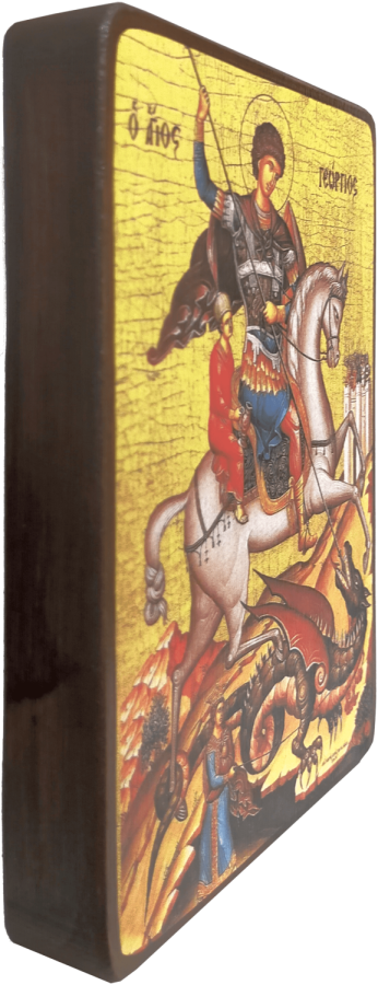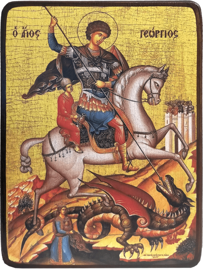 Святой Георгий родился в палестинском городке Лидда. Отец мальчика был благочестивым и обеспеченным человеком. Он исповедал христианство и принял смерть за то, что не отступился от нее. Мать, спасая своего еще не родившегося сына, нашла пристанище в Палестине. Георгий получил хорошее образование, он рос умным и сильным человеком. Именно благодаря этим качествам, будущий воин поступил на службу к императору Диоклетиану. Император был язычником, отличался жестокостью и несправедливостью. Во время его правления множество христиан было казнено. Об этом узнал и сам военный, который решил отправиться к императору для того, чтобы открыть собственную веру. Диоклетиан советовал ему отречься от христианства, но Георгий был неприступен и после этого подвергался пыткам в течении 7 дней. После недельных пыток и издевательств, его казнили, отрубив голову. За то, что Георгий не отрекся от Господа Бога и мужественно вынес все испытания, его причислили к лику святых.
