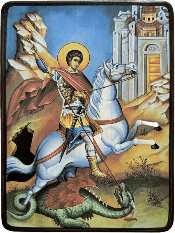 Святой Георгий родился в палестинском городке Лидда. Отец мальчика был благочестивым и обеспеченным человеком. Он исповедал христианство и принял смерть за то, что не отступился от нее. Мать, спасая своего еще не родившегося сына, нашла пристанище в Палестине. Георгий получил хорошее образование, он рос умным и сильным человеком. Именно благодаря этим качествам, будущий воин поступил на службу к императору Диоклетиану. Император был язычником, отличался жестокостью и несправедливостью. Во время его правления множество христиан было казнено. Об этом узнал и сам военный, который решил отправиться к императору для того, чтобы открыть собственную веру. Диоклетиан советовал ему отречься от христианства, но Георгий был неприступен и после этого подвергался пыткам в течении 7 дней. После недельных пыток и издевательств, его казнили, отрубив голову. За то, что Георгий не отрекся от Господа Бога и мужественно вынес все испытания, его причислили к лику святых.