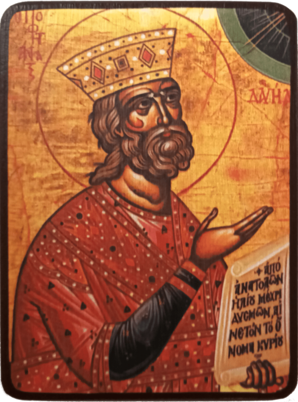 Икона Давид Псалмопевец на желтом фоне