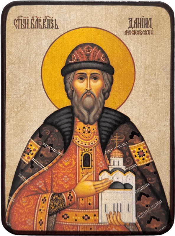 Благоверный князь Даниил положил начало нынешнему величию Москвы. Родился в 1261 году и был четвертым сыном святого великого князя Александра Невского. В жизни святой Даниил отличался благочестием, кротостью и миролюбием. Во все дни жизни его державе никто не нанес ущерба, и он сам не пользовался насилием для приобретения земель. И это не мешало увеличению княжества. в 1302 года Московское княжество увеличилось за счет мирного присоединения Переяславского княжества.