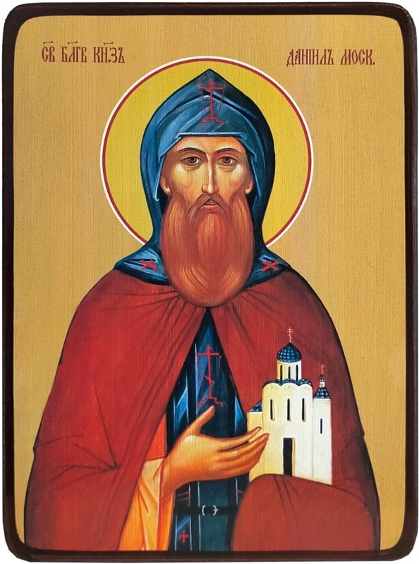 Благоверный князь Даниил положил начало нынешнему величию Москвы. Родился в 1261 году и был четвертым сыном святого великого князя Александра Невского. В жизни святой Даниил отличался благочестием, кротостью и миролюбием. Во все дни жизни его державе никто не нанес ущерба, и он сам не пользовался насилием для приобретения земель. И это не мешало увеличению княжества. в 1302 года Московское княжество увеличилось за счет мирного присоединения Переяславского княжества.