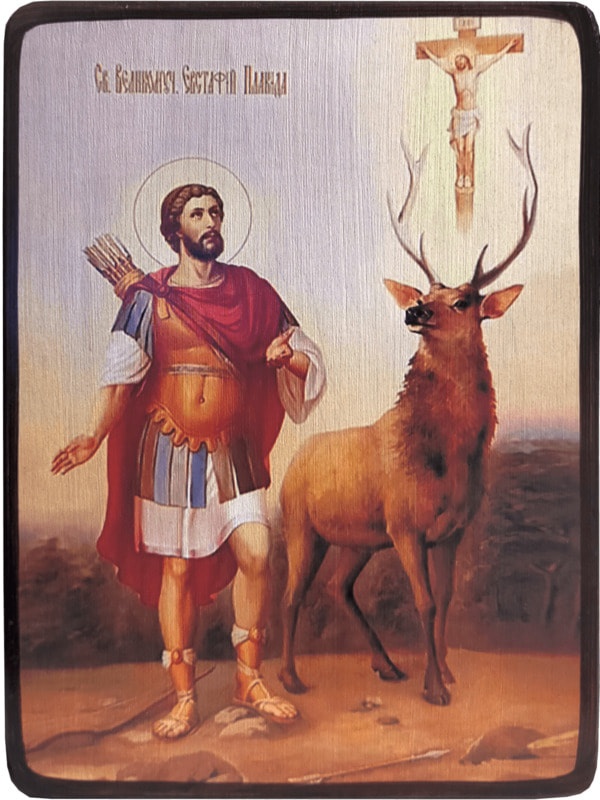 Евстафий Плакида был очень добрым человеком. Он находил пищу для голодных, одежду для нагих, освобождал от узницы и помогал бедным. Его жена была такая же милостивая и добрая. Евстафий Плакида вместе с семьей принял христианство. Священник по имени Иоанн крестил их, поведал им заповеди Божии и нарек их новыми именами: Плакида - Евстафий, супруга стала Феопистия, а сыновья - Агапий и Феопист. И стали они жить еще более честно и благочестиво.