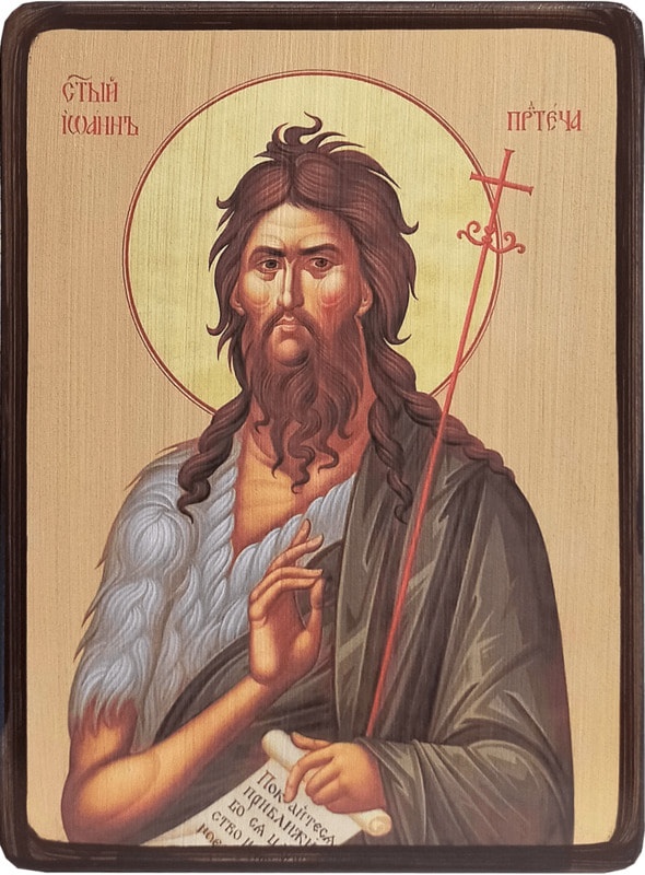 Иоанн Пророк, Предтеча и Креститель Господень, согласно Евангелиям был ближайшим предшественником Иисуса Христа, предсказавшим пришествие Мессии. Жил в пустыне аскетом, затем проповедовал крещение покаяния для иудеев, крестил в водах Иордана Иисуса Христа. Около 30 года он был обезглавлен из-за козней иудейской царевны Иродиады и её дочери Саломеи.