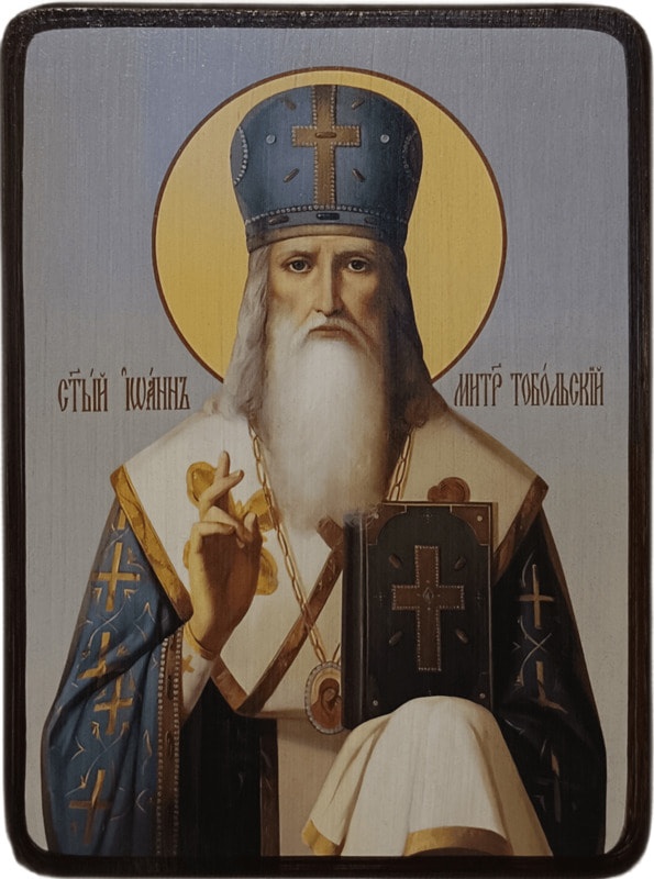 Святитель Иоанн (Максимович Иван Максимович) родился в декабре 1651 году в городе Нежин и происходил из знатного дворянского рода. В 1668 году окончил Киевскую духовную академию и был оставлен при ней наставником. В 1676 году Иоанн стал иноком Киево-Печерской Лавры и вскоре был возведён в сан иеромонаха. В 1684 году был назначен управляющим Свенским монастырем близ Брянска. В 1695 году он был возведен в сан архимандрита и назначен управляющим Черниговским Елецким (Успенским) монастырем. 10 января 1697 года архимандрит Иоанн получил сан архиепископа. Владыка Иоанн был возведен в сан митрополита Тобольского и всея Сибири в начале 1711 года. Митрополит Иоанн вел скромную и тихую жизнь, подвизаясь в пламенной молитве к Богу, тайно обходил дома нуждавшихся, творя благостыню. Скончался святитель Иоанн 11 июля 1715 года.