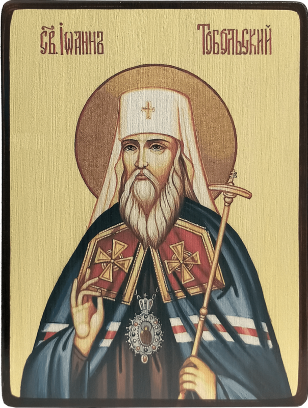 Святитель Иоанн (Максимович Иван Максимович) родился в декабре 1651 году в городе Нежин и происходил из знатного дворянского рода. В 1668 году окончил Киевскую духовную академию и был оставлен при ней наставником. В 1676 году Иоанн стал иноком Киево-Печерской Лавры и вскоре был возведён в сан иеромонаха. В 1684 году был назначен управляющим Свенским монастырем близ Брянска. В 1695 году он был возведен в сан архимандрита и назначен управляющим Черниговским Елецким (Успенским) монастырем. 10 января 1697 года архимандрит Иоанн получил сан архиепископа. Владыка Иоанн был возведен в сан митрополита Тобольского и всея Сибири в начале 1711 года. Митрополит Иоанн вел скромную и тихую жизнь, подвизаясь в пламенной молитве к Богу, тайно обходил дома нуждавшихся, творя благостыню. Скончался святитель Иоанн 11 июля 1715 года.
