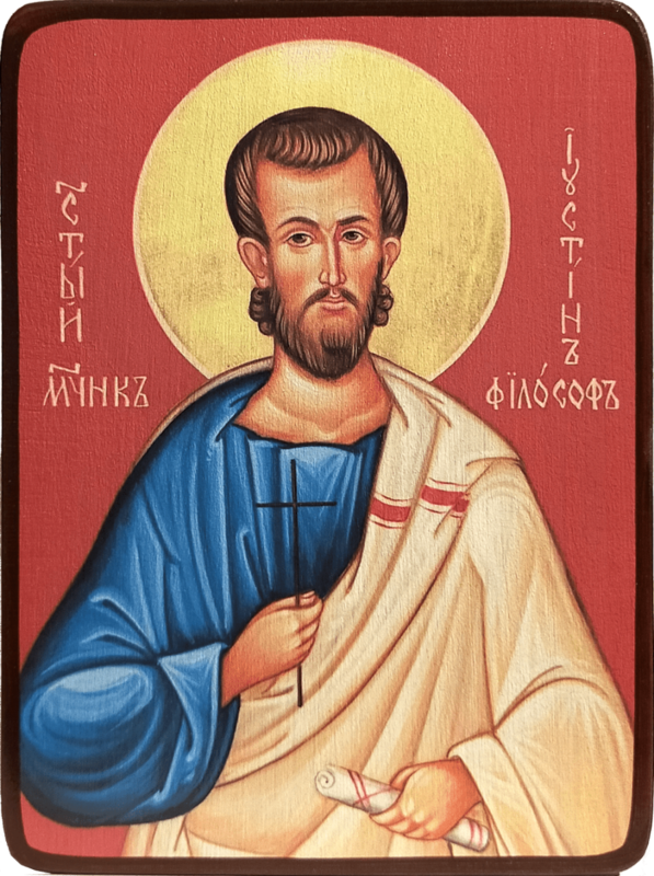 Святой мученик Иустин Философ, Великий, Римский, родился в Сихеме (древний город Самарии). Он в совершенстве изучил различные направления греческой философии: стоиков, перипатетиков, пифагорейцев, платоников. На 30-м году жизни, между 133 и 137 годом, Иустин, будучи в Эфесе, принял христианство и отправился проповедовать Священное Писание в Рим. Там он открыл училище, где проповедовал христианскую философию. Святой Иустин последовательно отстаивал истинность и спасительность христианского учения, убедительно опровергая и языческие мудрования. В 166 году Иустин в результате ложных обвинений киника Кресцента, которого он всегда побеждал в прениях, был осуждён и после жестоких истязаний убит.