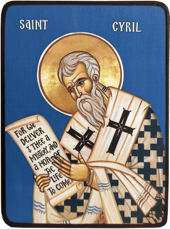 Икона Кирилл Иерусалимский на синем фоне