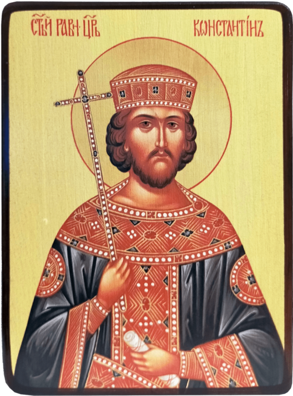 Святой равноапостольный император Константин Великий родился около 280 года в городе Наисс, на территории современной Югославии. Отец его был одним из римских военачальников, и юность Константина прошла в Никомидии, при дворе императора Диоклетиана. После того, как в 305 году император Диоклетиан отрёкся от престола, отец Константина Констанций стал правителем западной части Римской империи. После смерти Констанция в 306 году армия провозгласила Константина императором. В 312 году он, победив всех своих соперников, стал безраздельным повелителем Западной Римской империи. А в 337 году Константин нанёс поражение армии правителя восточной части империи Лициния и стал единоличным правителем всей Римской империи.