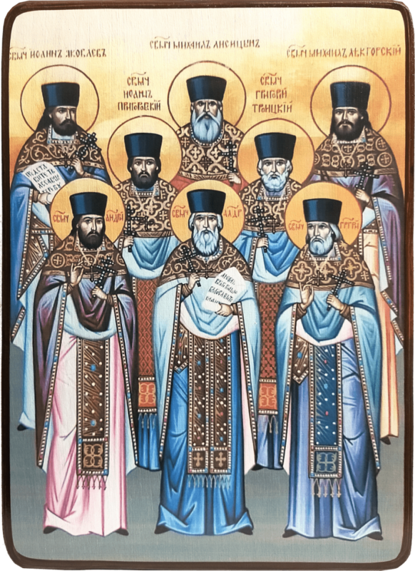 На иконе изображены все прославленные Кубанские новомученики: священномученики Александр Флегинский (память 6 апреля), Михаил Лисицын (память 11 марта), Иоанн Пригоровский (память 4 мая), Михаил Лекторский (память 27 октября), Григорий Троицкий, Григорий Конокотин, Андрей Ковалев и Иоанн Яковлев (память 28 сентября).