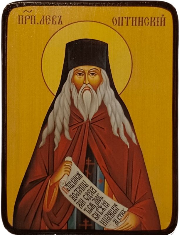 Преподобный Лев (в миру Лев Данилович Наголкин) Оптинский родился в 1768 году в городе Карачев Орловской губернии. В молодости служил приказчиком по торговым делам. В 1797 году он вступил в число братии Оптиной пустыни, а через два года перешел в Белобережский монастырь в Орловской губернии. В 1801 году послушник Лев был пострижен в мантию с именем Леонид, 22 декабря того же года рукоположен в иеродиакона, а 24 декабря - в иеромонаха. В 1804 году преподобный Лев стал настоятелем Белобережской пустыни. Через несколько лет он оставил должность настоятеля и удалился в тихую лесную келлию, затем в один из скитов Валаамского монастыря, а через шесть лет в Александро-Свирский монастырь. В 1829 году преподобный Лев вместе с шестью учениками прибыл в Оптину пустынь, где ему было поручено окормлять братию и богомольцев.