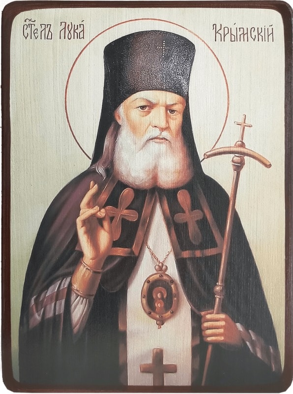 Святой исповедник Лука (в миру Валентин Феликсович Войно-Ясенецкий) родился 27 апреля 1877 года в Керчи. Окончил гимназию, затем получил высшее медицинское образование. В 1920-х годах Валентин работал хирургом в Ташкенте, активно участвуя и в церковной жизни, посещая заседания церковного братства. Принял решение посвятить свою жизнь Богу, после трёхлетнего служения в сане иерея. 30 мая 1923 года иеромонах Лука был тайно хиротонисан во епископа. Всё время священного служения святитель Лука подвергался многочисленным арестам, пыткам и ссылкам, которые тем не менее не ослабили его ревность в исполнении архипастырского долга и служении людям в качестве врача.