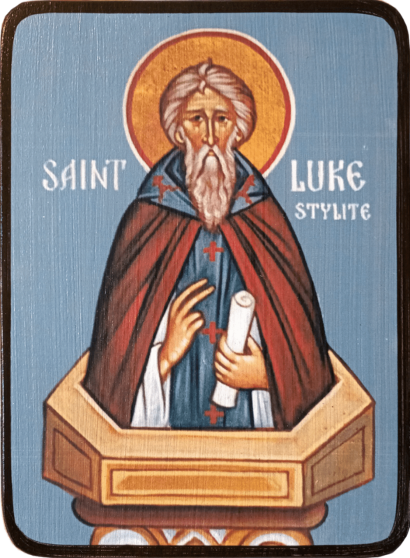 Преподобный Лука, Новый Столпник при византийском императоре Константине Багрянородном был воином. Во время войны с Болгарией (917) Промыслом Божиим святой Лука остался невредим. После войны он принял монашество и, преуспевая в подвигах, был возведен в сан пресвитера. Стремясь к высшим ступеням совершенства, преподобный Лука возложил на себя вериги и встал на столп. Спустя три года стояния по Божественному внушению он пошел на гору Олимп, затем в Константинополь и, наконец, в Халкидон, где также избрал себе столп, на котором простоял 45 лет, являя обретенный дар чудотворения. Скончался около 980 г.