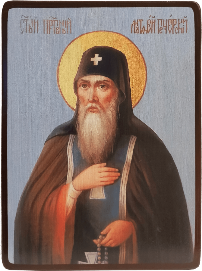 Икона Матфей Печерский на синем фоне