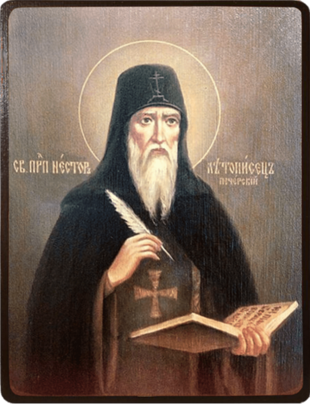 Преподобный Нестор Летописец родился в 50-х годах XI века в Киеве, 17-ти лет поступил в Киево-Печерскую обитель. Был послушником преподобного Феодосия. Постриг принял от игумена Стефана, преемника Феодосия. Своей чистотою жизни, молитвою и послушанием юный подвижник скоро превзошел даже известных печерских старцев. Был посвящен во иеродиакона. О его высокой духовной жизни говорит то, что он в числе других преподобных отцов участвовал в изгнании беса из Никиты Затворника, впоследствии Новгородского святителя (память 31 января), прельщенного в иудейское мудрствование. Преподобный Нестор является составителем первоначальной истории нашего Отечества, или летописи, где он излагает по годам сказание о начале Русской земли и последующих событиях ее истории до 1100 года. Кроме того, им написано житие святых князей Бориса и Глеба, "Сказание о первых печерских подвижниках" и проч.