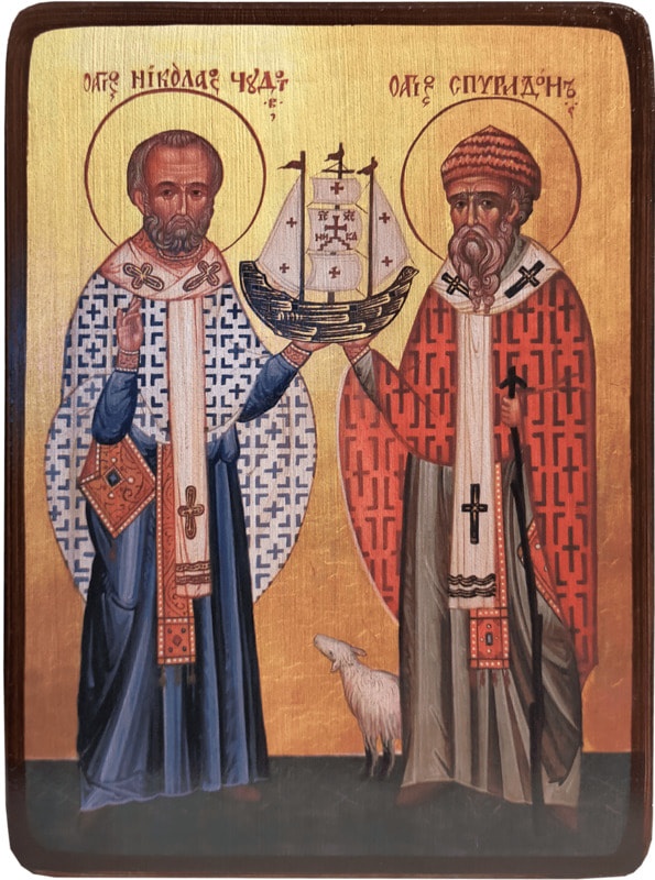 В старину на Руси можно было часто увидеть необычный образ. Двое святых стоят плечом к плечу со строгими, но исполненными любовью лицами. Сейчас это большая редкость. Конечно, святых Спиридона и Николая почитают до сих пор, но не везде можно купить икону Спиридон Тримифунтский и Николай Мирликийский с лодкой. В наше время, когда традиции восстанавливаются, любого православного порадует возможность украсить этим образом домашний иконостас.
