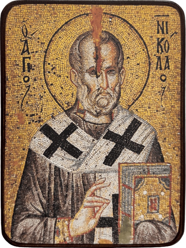 В правом киоте собора монастыря Ставроникита на святой горе Афон, освящённого в честь Святителя Николая, хранится мозаичная чудотворная икона этого угодника Божия, относящаяся к XIII—XIV векам. История её удивительна. В 1545 году афонские рыбаки, закинув в море сети, вытащили не рыбу, а икону. При этом чудном улове присутствовал патриарх Иеремия. Как икона оказалась в море?