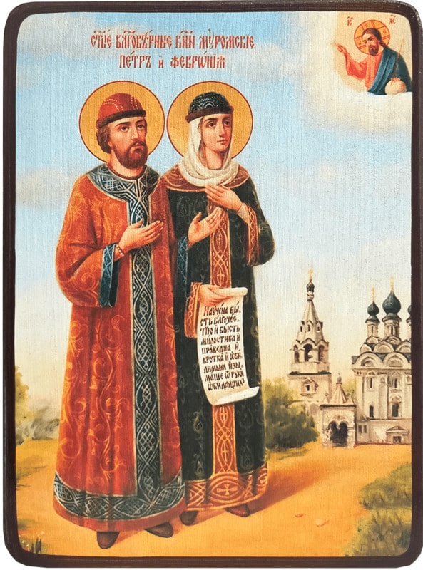 Святой благоверный князь Пётр был вторым сыном Муромского князя Юрия Владимировича. В 1203 году он вступил на Муромский престол. За несколько лет до этого он заболел проказой. Во сне он увидел, что излечить его сможет только дочь пчеловода дева Феврония. Когда князь Пётр увидел святую Февронию, то так полюбил её за благочестие, мудрость и доброту, что дал обет жениться на ней после исцеления. После их свадьбы бояре потребовали от князя, чтобы он выгнал простолюдинку. Получив отказ, они изгнали Петра и Февронию из города. Но вскоре народ взбунтовался и потребовал вернуть их на престол.