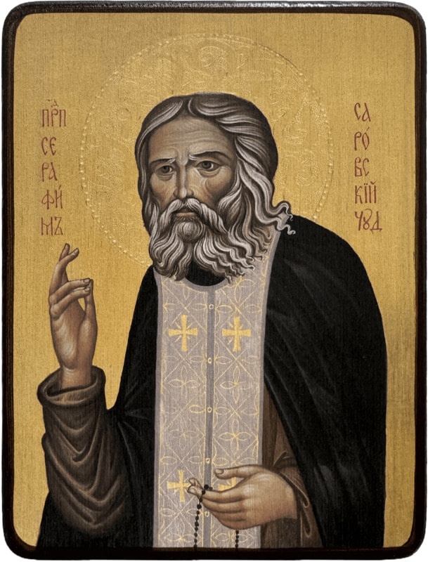 Икона Серафим Саровский на жёлтом фоне