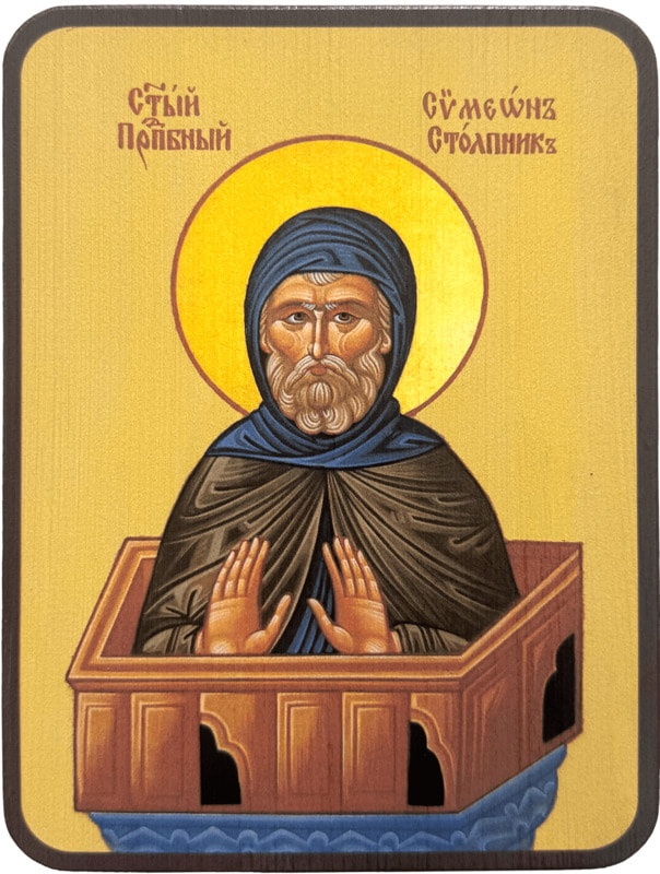 Преподобный Симеон Столпник родился в Антиохии Сирийской в середине IV века. Решив стать монахом, он покинул родительский дом и принял иночество в соседней обители, где провёл некоторое время в монашеских подвигах молитвы, послушание и посте, а затем уединился в сирийскую пустыню. Там Симеон построил столп в несколько метров высоты, положив начало новому виду подвижничества - столпничества, поселился на нём и этим лишил себя возможности прилечь и отдохнуть. За свои подвиги он сподобился исцелять душевные и телесные болезни и дара предвидеть будущее.