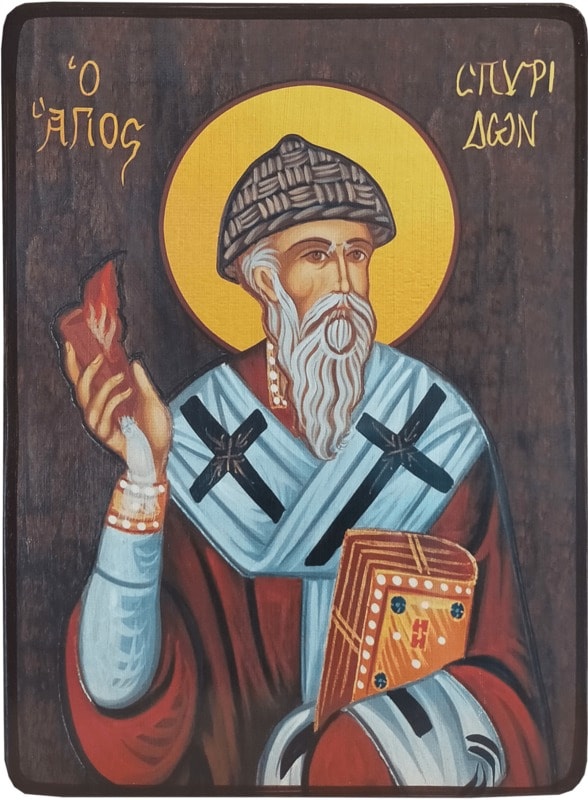 Святитель Спиридон родился в конце III века в деревне Аския на острове Кипр, был пастухом овец. После смерти жены он за чистую и богоугодную жизнь был избран епископом кипрского города Тримифунт. Будучи в этом сане он прославился как чудотворец и целитель. До самого своего конца он выходил в поле с крестьянами. Он сеял и собирал урожай. Однажды была сильная жара, вдруг крестьяне увидели как голова Святителя оросилась прохладной влагой, которая лилась с неба. Затем волосы Святого начали менять свой цвет. Все были поражены чудесными перевоплощениями. На что Спиридон сказал, что скоро он встретится со Спасителем. Это был заключительный год земной жизни Чудотворца. Приставился он во время усердной, искренней и горячей молитвы к Господу. Святитель завещал людям из паствы жить благочестиво, взращивать в себе человеколюбие, милосердие и крепкую веру во Христа. Скончался епископ Спиридон около 348 года и был погребён в храме в городе Тримифунт.