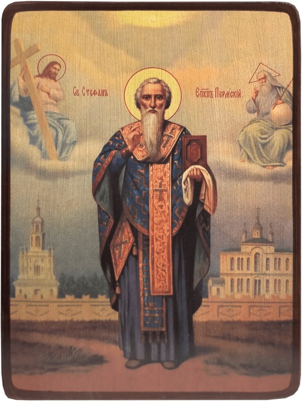 Святитель Стефан родился около 1340 года в городе Устюг. В молодости принял монашеский постриг в монастыре в честь святителя Григория Богослова в городе Ростове, затем был рукоположен во иеродиакона и иеромонаха. Горя желанием обратить зырян ко Христу, Стефан отправился в Пермь. Там он много сделал для искоренения язычества и распространения христианской веры среди зырян. В 1383 году отец Стефан был хиротонисан во епископа Пермского. Будучи в этом сане, он строил церкви и монастыри, открывал училища, переводил на зырянский язык богослужебные книги. Плодом его подвигов и добродетелей стало обращение всей обширной Пермской земли к Христианству.