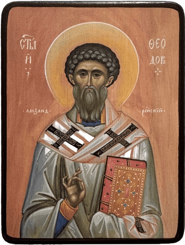 Священномученик Феодор, епископ Александрийский, родился в Египте в Александрии. Этот город прославился в Церкви Вселенской многими мучениками и исповедниками: от святого Евангелиста Марка, первомученика Александрийского (+ 63, память 25 апреля) до святого Афанасия Великого (память 18 января и 2 мая), столпа и исповедника православия (+ 373). К сожалению, исторические записи не донесли до нас точных данных о времени жизни и подвигах святого епископа Феодора, но Церковь Христова во все времена хранила имя священномученика в своих диптихах.
