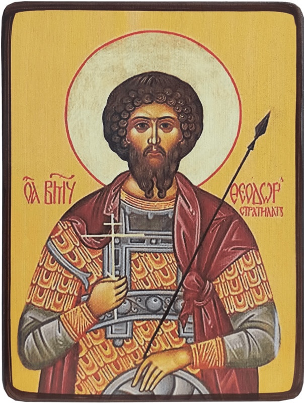 Великомученик Феодор Стратилат родился в городе Евхаит в Малой Азии. Был воеводой, "стратилатом" по-гречески, в городе Гераклея близ Черного моря. Своей благочестивой жизнью и кротким управлением он заслужил уважение и любовь местных жителей и многих привёл к христианской вере. Узнав об этом, император Ликиний в 319 году приказал его подвергнуть жестоким истязаниям, чтобы добиться от него отречения от Христа. После многих пыток Феодор был обезглавлен.