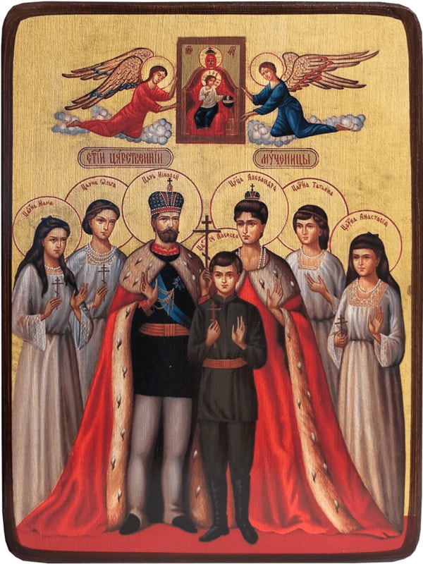 Еще в 1981 году Русская православная церковь причислила царственных страстотерпцев в лику святых, правда, произошло это за границей. Тогда и начали появляться иконы с их изображением.
