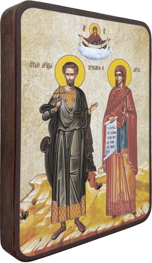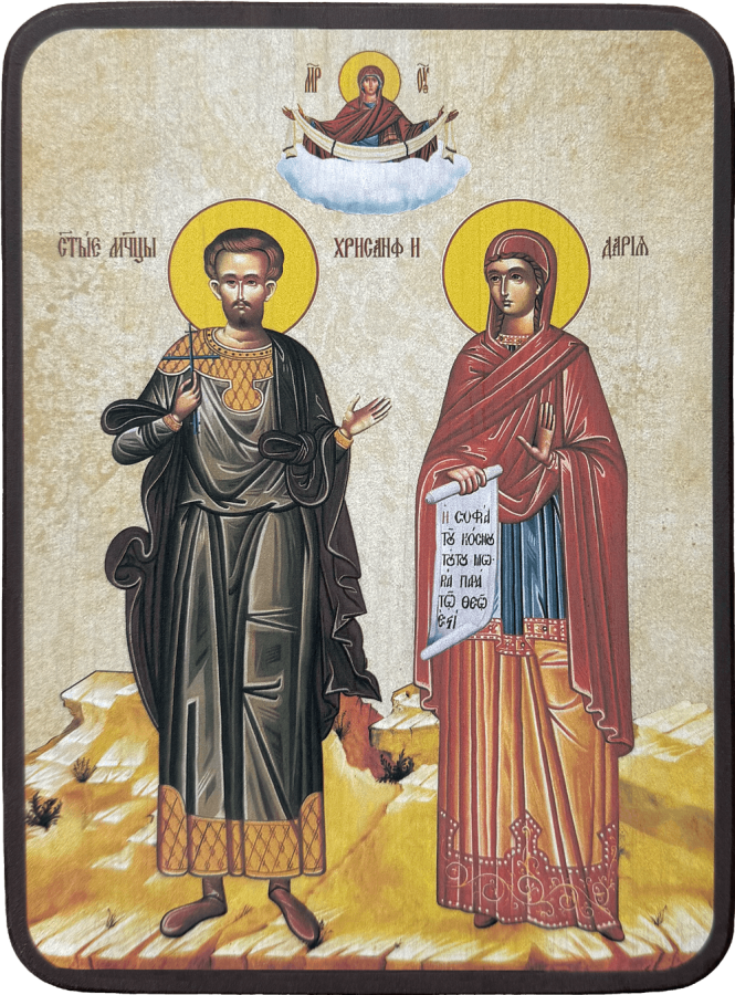 Красавица Дария была жрицей Афины Паллады. Ее выдали замуж за юношу Хрисанфа, который открыто проповедовал Евангелие. Святой Хрисанф обратил свою жену к Христу, и молодые супруги по обоюдному согласию решили вести девственную жизнь.