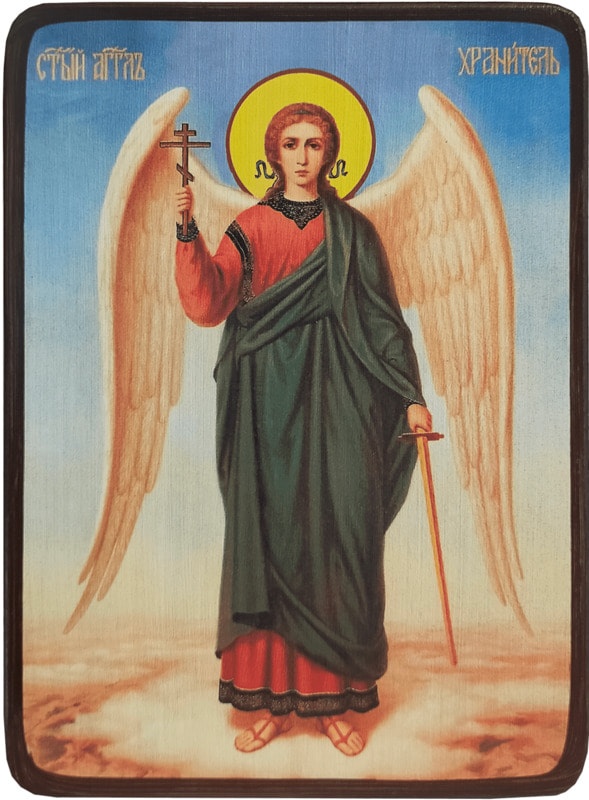 Такие образа известны уже очень давно. Русские иконописцы стали писать изображение святого Ангела Хранителя в конце XVI века. Иконы обычно очень символичны. В руках Ангел держит крест для того, чтобы благословить, и меч, чтобы защитить своего подопечного от темных сил.