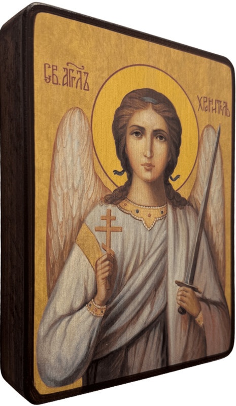 Такие образа известны уже очень давно. Русские иконописцы стали писать изображение святого Ангела Хранителя в конце XVI века. Иконы обычно очень символичны. В руках Ангел держит крест для того, чтобы благословить, и меч, чтобы защитить своего подопечного от темных сил.