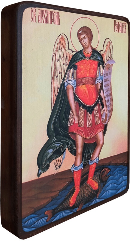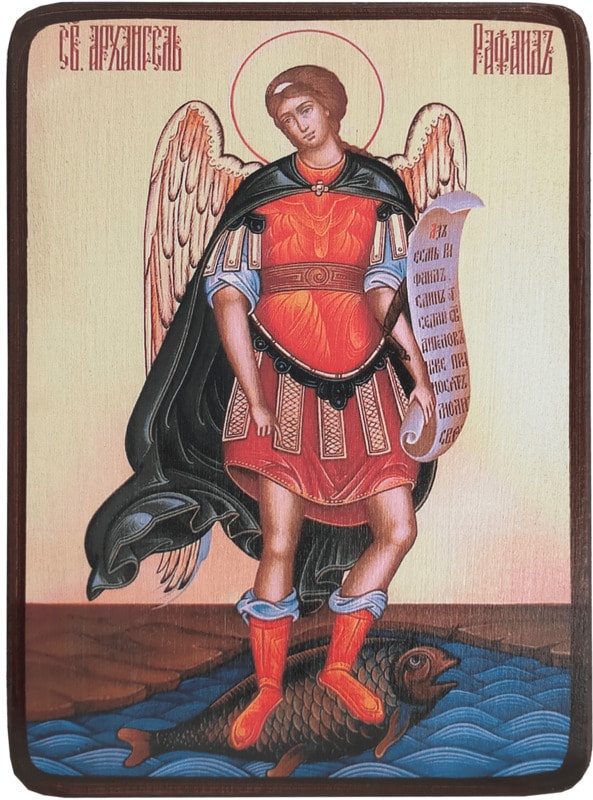 В чем помогает икона Архангел Рафаил на светлом фоне