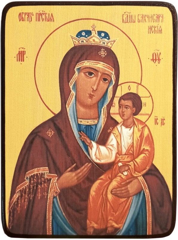 Этот образ также известен под именем Крымской или Мариупольской Богоматери. Ее обрели в скиту неподалеку от Бахчисарая, основанном выходцами из Греции. Она известна с середины XV века. Возможность купить икону Бахчисарайской Божией Матери порадует верующих, которые ценят старинные образа, овеянные чудесами.