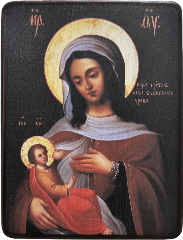Икона Албазинская (Слово плоть бысть) Божией Матери на коричневом фоне