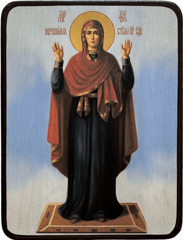 Эта святыня - не только почитаемое изображение Богородицы, но и исторический памятник. Можно вверить себя и своих близких заступничеству Пресвятой Девы, если купить икону Божией Матери Нерушимая Стена. Она не раз показывала верующим удивительные чудеса.