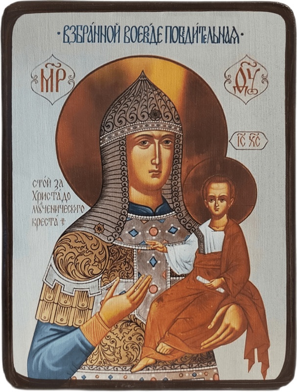Жизнь православного христианина — это всегда борьба с собственным несовершенством, с силами зла и искушениями. Чтобы успешно противостоять им, стоит купить икону Взбранной Воеводе Победительная, на голубом фоне для домашней молитвы.