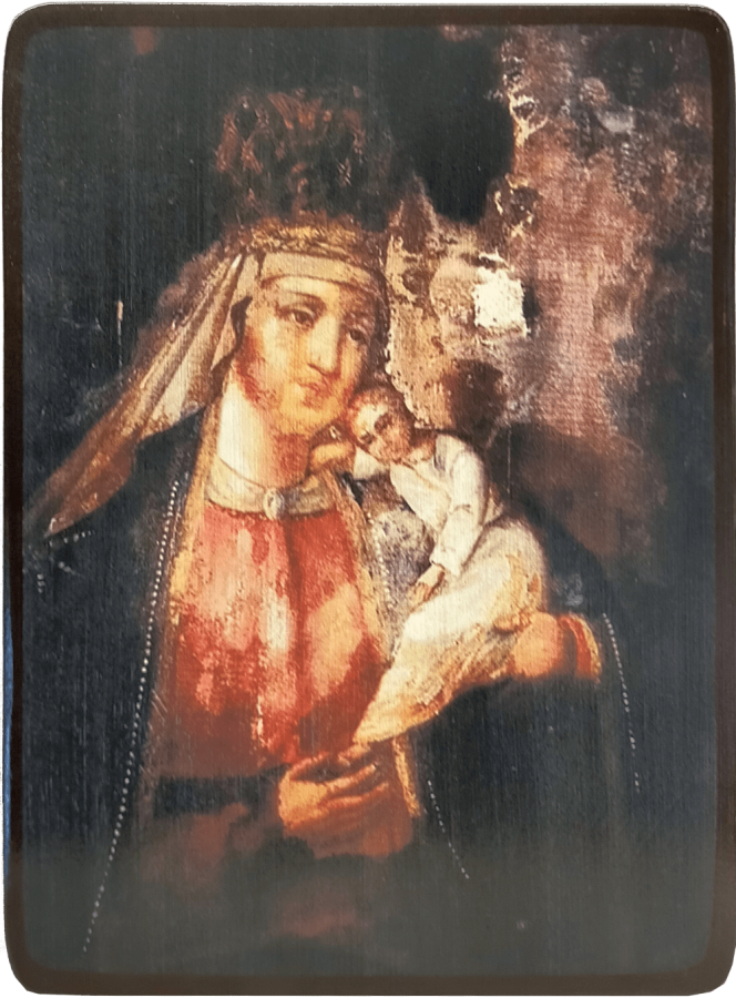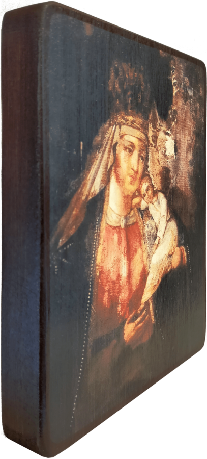 Чудотворная икона была дарована верующим относительно недавно - в 1997 году. Две женщины принесли в храм потемневшую от времени доску, которую случайно нашли в сарае. Насельницы монастыря тоже не признали в ней ничего необычного и убрали в запасник. Оттуда ее извлекла настоятельница, которая поместила образ в храм и благословила молиться перед ним. С этого момента на неказистой доске стали проявляться Божественные Лики Божией Матери и Младенца.