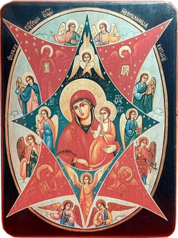В чем помогает икона Неопалимая Купина Божией Матери на тёмном фоне