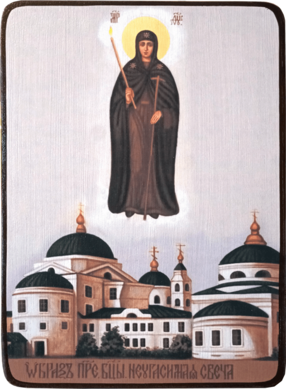 В чем помогает икона Неугасимая Свеча Божией Матери на светлом фоне