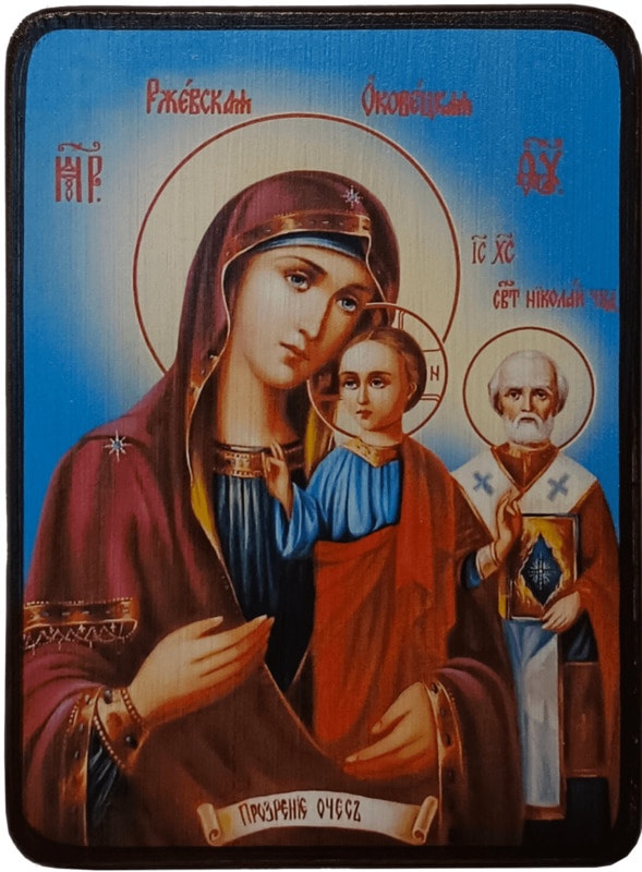 Икона Неопалимая купина Божией Матери на тёмном фоне