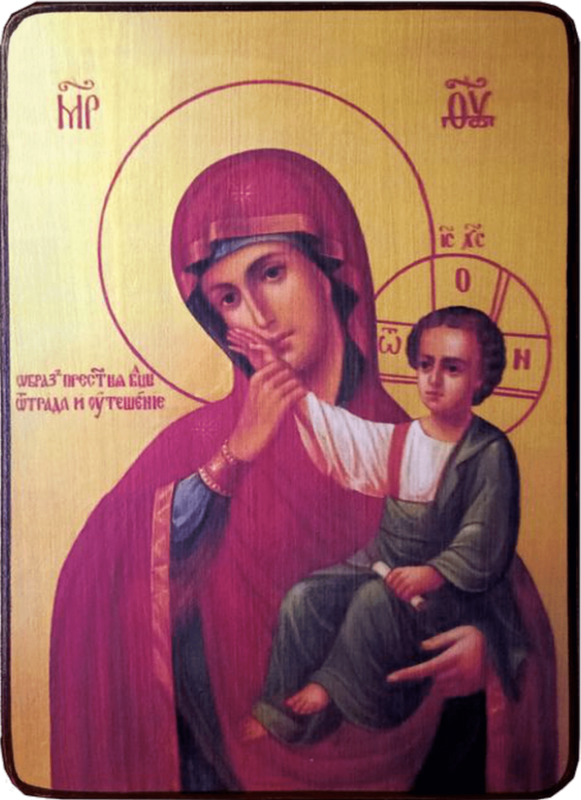 Этот образ рассказывает нам о невероятном чуде - изображения на нем однажды начали двигаться и потом остались в другом положении. Купить икону Отрада и Утешение Божией Матери - значит доверить свой дом и близких покровительству высших сил.